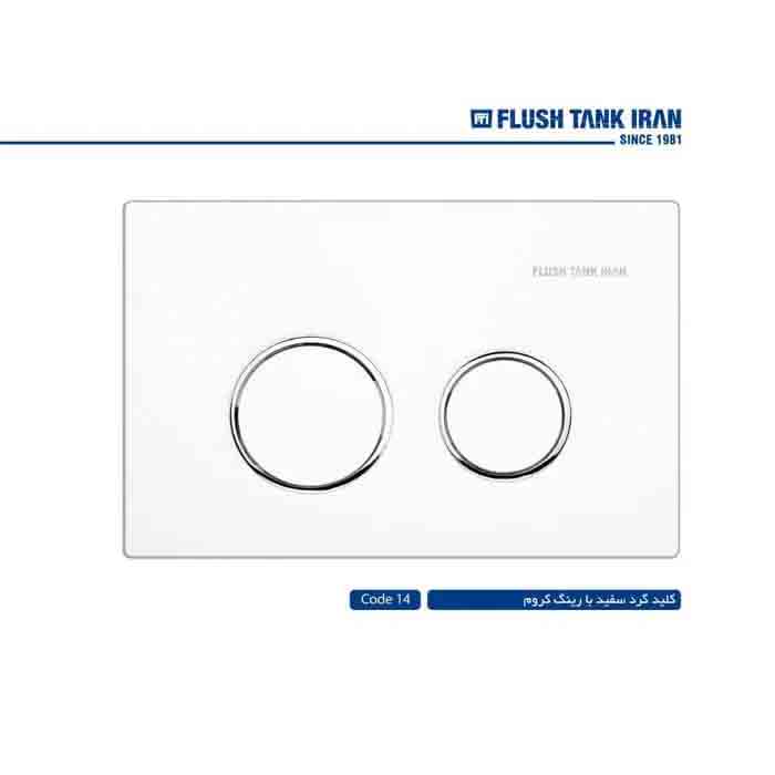 خانه فلاش تانک کلید تخلیه توکار کلید فلاش تانک توکار ایران – گرد سفید با رینگ کروم (کد ۱۴)