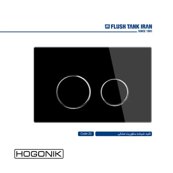 کلید فلاش تانک توکار ایران – گرد شیشه سکوریت مشکی (کد ۲۵)